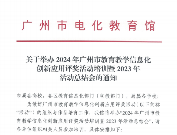 近日,2024年廣州市教育教學信息化創新應用評獎活動培訓暨2023年活動總結會在廣州市電化教育館順利舉行。