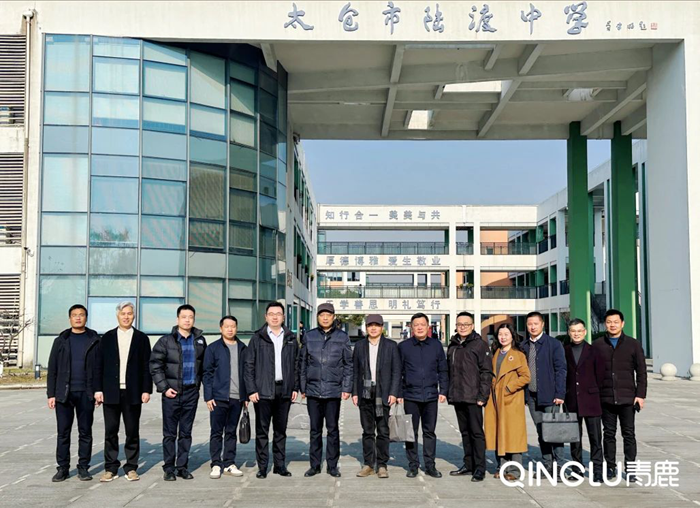 調(diào)研組在太倉市陸渡中學書記、校長沈兵等校領(lǐng)導的陪同下,參觀陸渡校園,共話智慧教育。