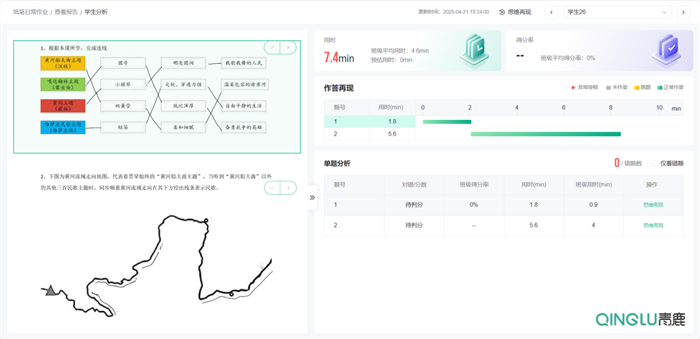 課堂上,伍老師依托青鹿智慧紙筆系統(tǒng),檢測學生們對不同音樂主題的(樂器音色、音樂形象)歸納及對不同樂器音色的聽辨。學生在印有點陣碼的學習單上書寫,筆跡通過智能筆實時傳輸至課堂大屏。教師全程動態(tài)監(jiān)測學生作答過程,精準捕捉個體差異。