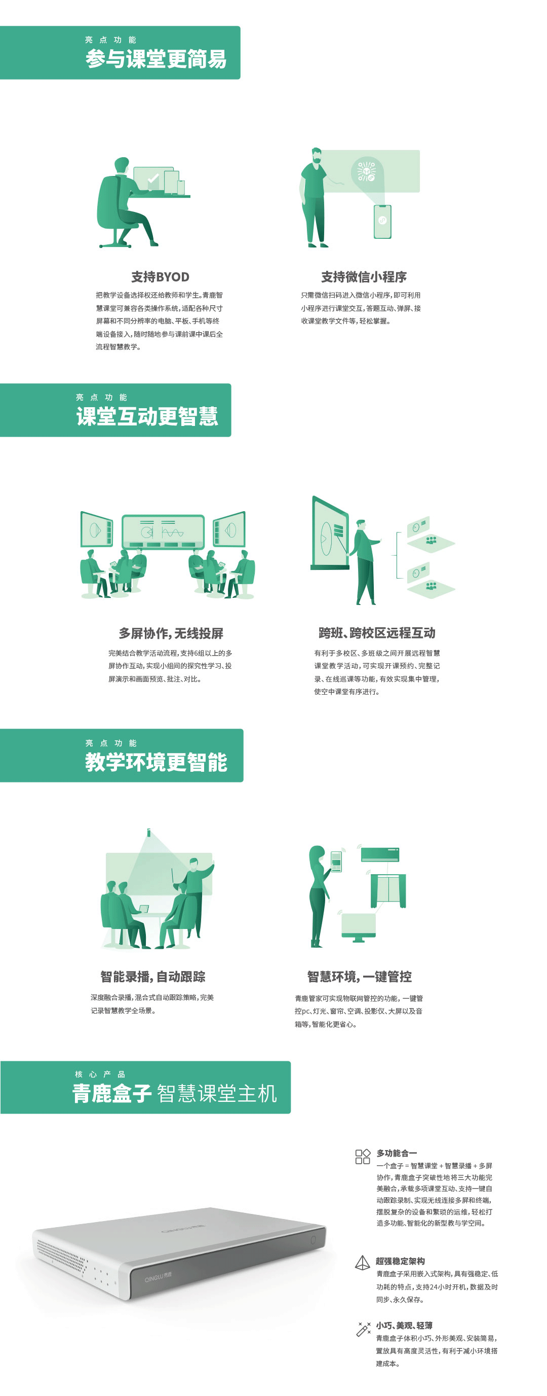 | 智慧教育信息化整體解決方案提供商,我們提供集智慧紙筆課堂、智慧錄播為一體的智慧教學環境,提供一套可廣泛應用于K12學校信息化整體建設的開放式底層平臺,為學校的教學和管理質量提升提供支撐,賦能教育的數字化轉型。 |