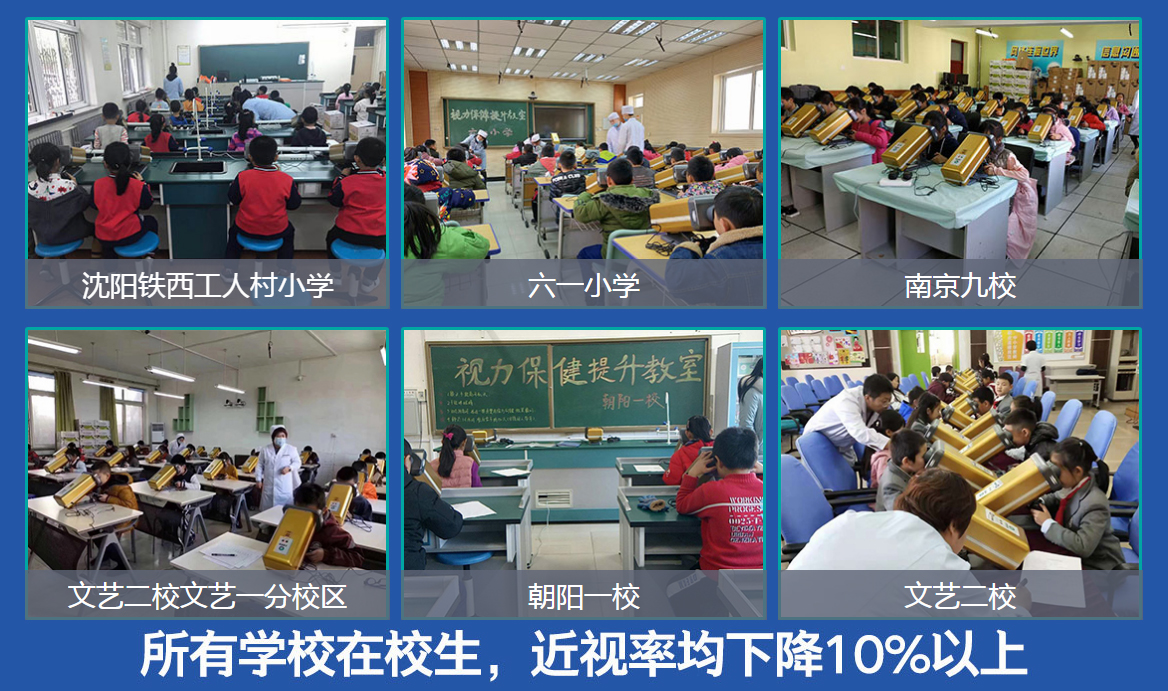 學生近視防控教室,主要由驗光設備和永康視力提升機構成。學校拿出一間教室,放置30-50臺永康視力提升機,學生按班級建制每周進行一次20-40分鐘的訓練,一般經過1-2個月5-10次訓練,會達到裸眼視力平均提升2行,近視率平均下降10%以上的良好效果。2018年11月、12月以及2019年1月,永康集團在沈陽市工人村第一小學、文藝二校教育集團文藝一校、朝陽一校、六一小學、南京九校等5所學校先后建立了學生近視防控教室,取得了良好效果。目前,北京市海淀區、西城區、遼寧省大連市、內蒙古烏蘭浩特市等地區,都在與永康視光集團合作,開展學生近視防控教室試點工作,并逐步在當地全面推廣。