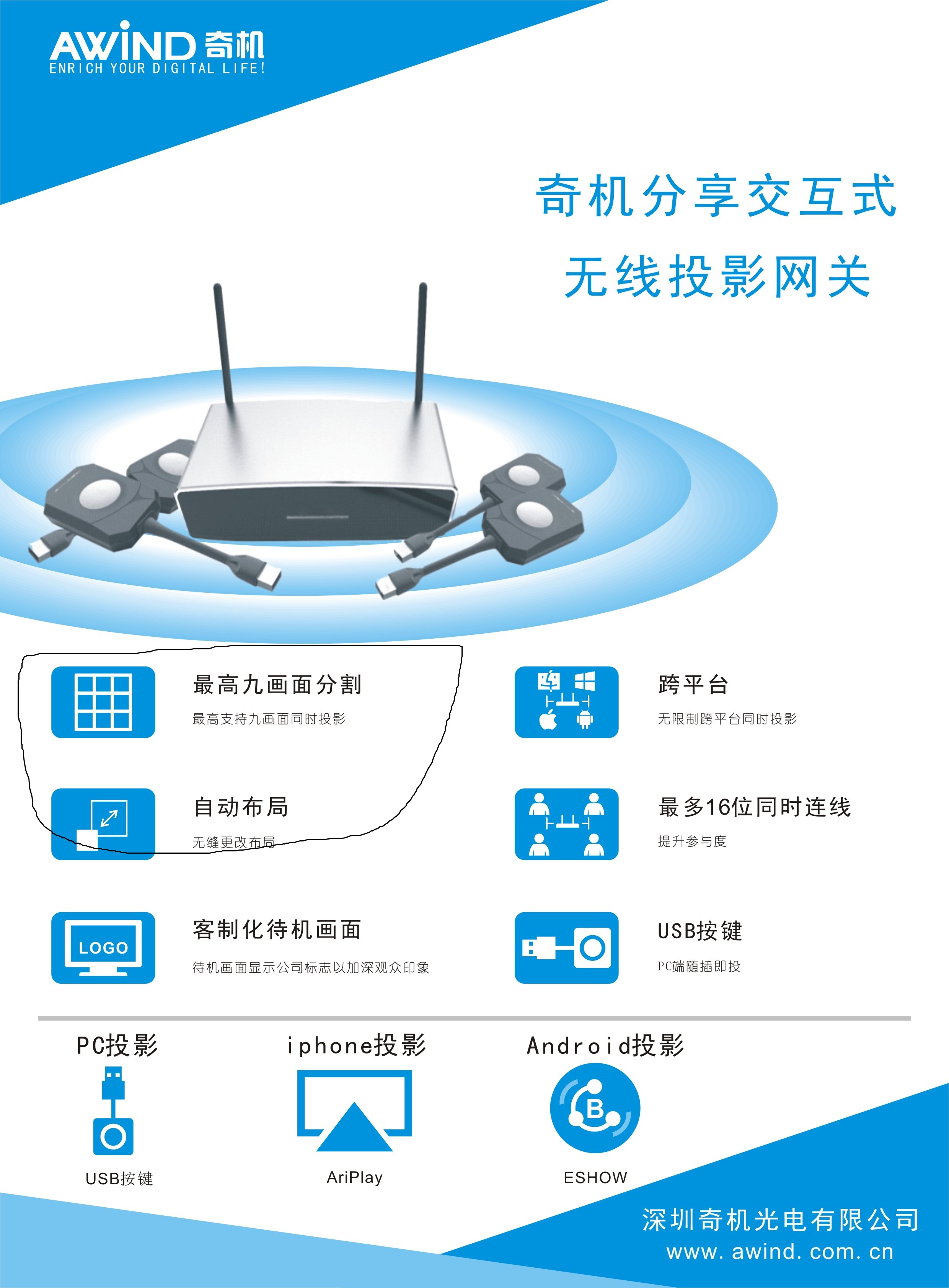 產品詳細介紹奇機無線會議協作A-900USB一鍵投影無線4K超清傳輸多屏互動airplay屏幕鏡像