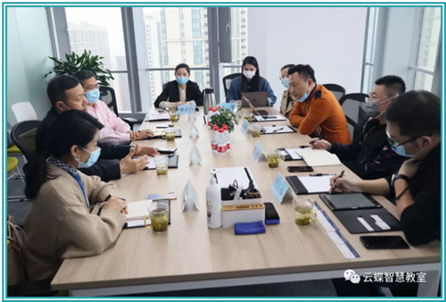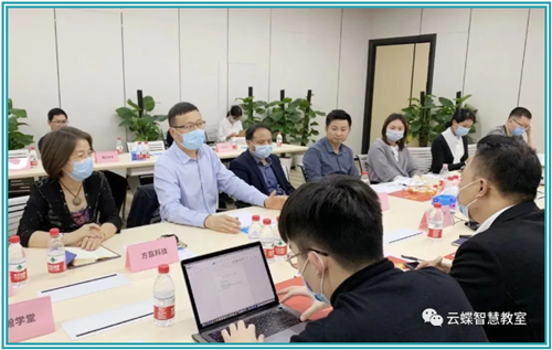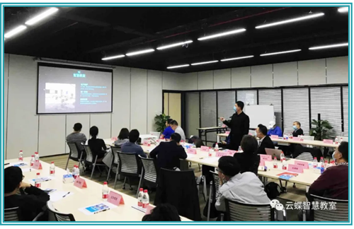 隨后,云蝶科技負(fù)責(zé)大客戶部的楊軒琳總監(jiān)為大家介紹了云蝶智慧教室全系列產(chǎn)品和整體解決方案,熱情專業(yè)的講解引發(fā)了在場(chǎng)與會(huì)人員的極大興趣,紛紛提出了想法,針對(duì)在座同仁們的提問(wèn),云蝶楊晞副總裁同時(shí)也與在座的廣東新華發(fā)行集團(tuán)、深圳市方直科技股份有限公司,廣東南方未名教育科技有限公司等代表進(jìn)行了溝通與交流,各方暢所欲言直抒己見,現(xiàn)場(chǎng)氣氛十分熱烈。