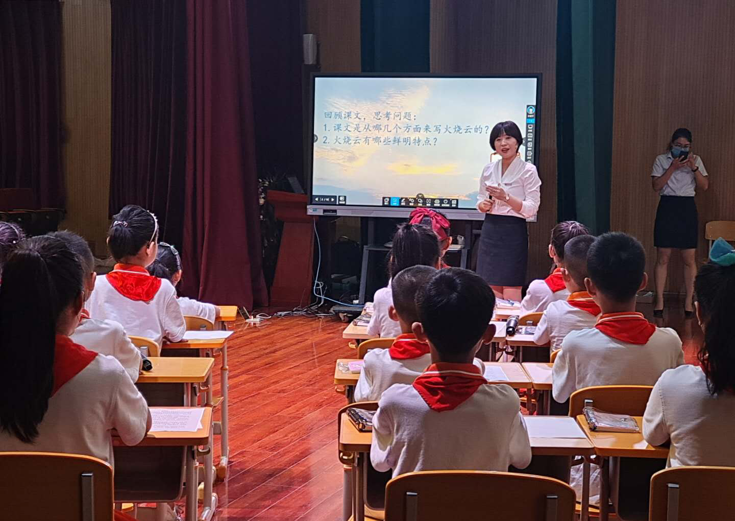 在這堂課上,云蝶智慧黑板配合云蝶紙筆課堂,實時互聯、實時采集課堂所有學生的紙筆書寫數據,并進行投屏,幫助蘭老師及時發現并糾正這位學生的誤答,也幫助其他學生規避了錯誤答案。