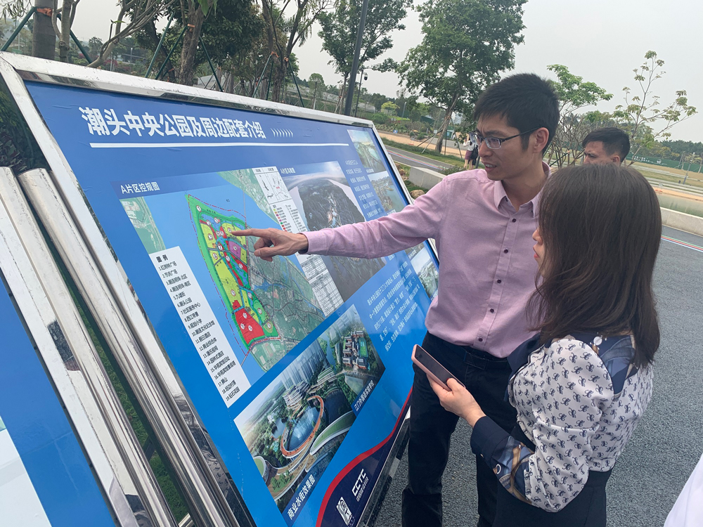 在江門市濱江管理公司負責人的陪同下,碧桂園江中區域及云蝶科技代表深入走訪江門人才島項目內已落成的科創中心、潮頭中央公園、科技產業園、智慧城市展示中心等配套設施,詳細了解相關項目的建設背景與合作情況。