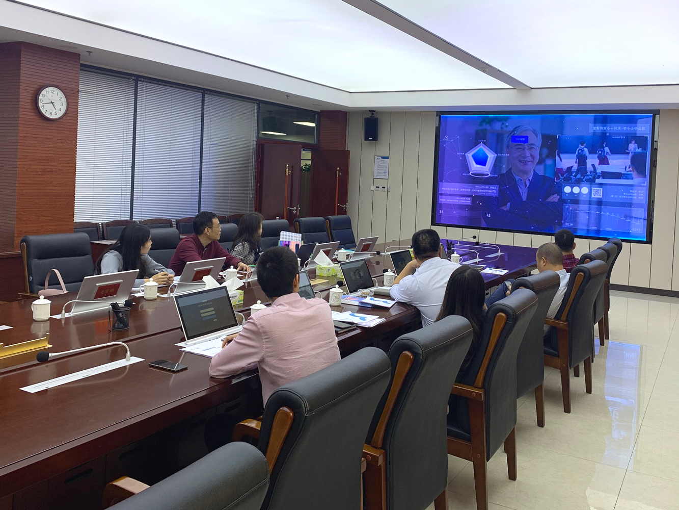 參觀結束后,蓬江區區委常委黎國新以及蓬江區科工商務局、潮連街道辦事處、濱江管理公司領導與碧桂園及云蝶科技代表在會議室進行座談交流。云蝶科技副總裁劉麗麗介紹了云蝶公司的發展情況,以及教育大數據產業基地的規劃與合作模式,并分享了云蝶在其他區域的建設案例。黎國新常委在聽取匯報后表示認可云蝶的發展,也歡迎云蝶科技落戶江門人才島,希望雙方保持密切溝通,盡快取得合作的進展。