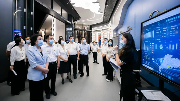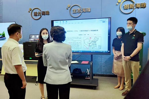 廣州市委常委、宣傳部長徐詠虹(左一)率隊(duì)參觀云蝶展區(qū)