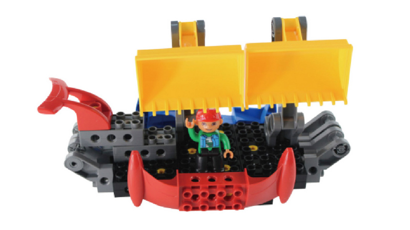本套裝可以搭建工程車、飛機和船等多種造型,除了功能搭建件,還配置了數把螺絲刀,可以滿足團隊合作或者比賽。本系列活動可以使孩子們通過探索基礎的機械構造及交通工具,掌握初步的機械知識,同時增強探索技能;通過自己動手裝配各種機器和交通工具,學習使用各種常用工具,大大增強動手能力;通過設計不同功能的機器,進一步發展創造力和問題解決能力;通過介紹自己設計的作品,發展語言表達能力;同時,在活動過程中,發展分類,估算等邏輯思維能力。讓孩子們在搭建各種工程用車用具中,體會“百變工程”的無限樂趣吧!