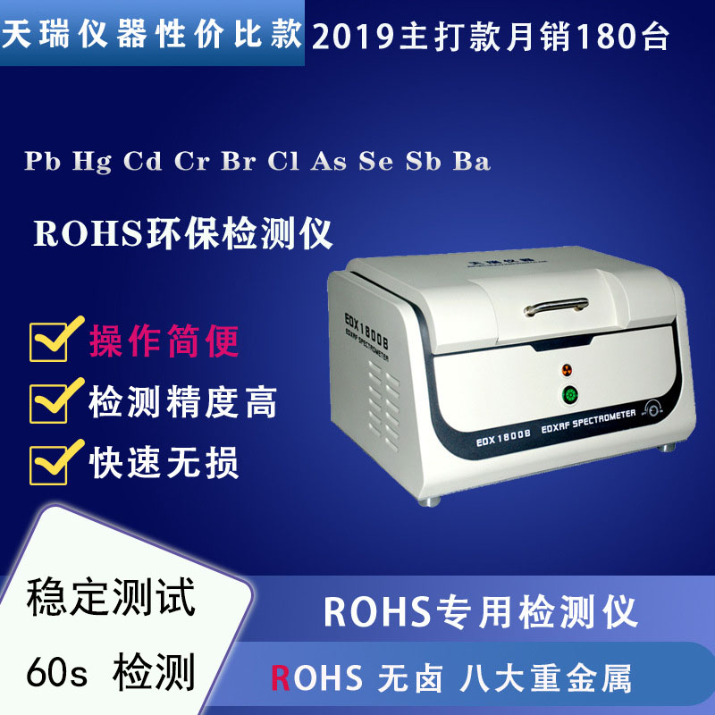 產品詳細介紹ROHS儀器1800 B是一種集RoHS指令/鹵素指令/八大重金屬指令一體的X熒光光譜儀。對鉛、汞、鎘、鉻、溴、氯、砷、銻、硒、鋇等元素有很好的檢測下限以及精度。 主要性能優(yōu)勢: 1.集合了多年ROHS檢測經驗,對六種有害元素尤其是Br、Cl等鹵素進行了優(yōu)化;2.模塊化的功能設計理念便于應對指令進行、檢測元素內容的升級; 3.更為精巧的工藝,實現(xiàn)小體積樣品的檢測; 4.更智能、方便的測試分析軟件,操作人性化、功能強大化; 5.全光路射線防護系統(tǒng)配合三重安全防護設計,同時采用軟硬件雙重安全連鎖,確保輻射安全性能。 產品特點: 1.操作界面簡單,測量方便,快捷; 2.無損檢測,在無標準樣品時亦可準確分析; 3.采用160±5eV的高精度分辨率,保證數(shù)據(jù)測量的精度; 4.能夠檢測鹵族元素的精確含量; 5.同置高清晰攝像頭,可幫助客戶判斷測量的部位; 6.電制冷型的X光管配合光管保養(yǎng)程序,散熱更好,并能有效的延長X光管的壽命; 7.外觀高貴大方,加大儀器內部空間,儀器內部通風性優(yōu),并有效屏蔽電磁干/擾; 8.采用獨特雙峰位快速自動校準; 9.自動譜線識別、多元素同時定性定量分析、讓用戶方便認識分析樣品的組成; 10.國際先進的定量分析算法,包含F(xiàn)P法、檢量線法、經驗系數(shù)法、理論系數(shù)法、神經網絡算法等; 11.客戶可根據(jù)自已的要求進行二次開發(fā),自行開發(fā)任意多個分析方法; 12.設備已設置了自動安全防護開關,以確保用戶安全使用。 應用范圍: 針對企業(yè)應對歐盟、北美RoHS環(huán)保指令精心設計。不但可以測試RoHS指令中的鉛、汞、鎘、鉻、銻、硒、砷等重金屬,還能測試無鹵素指令的溴、氯等有害元素及金屬鍍層。已在有色金屬、連接器、端子、印刷、玩具、服飾、醫(yī)療設備、地礦、電子、電器、五金、PCB、半導體、通信、電鍍、首飾、手表、汽車、鋼鐵、鞋材、皮革等行業(yè)得到廣泛應用。 |