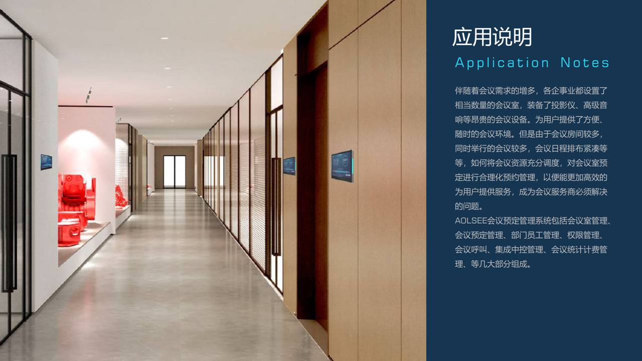 AOLSEE智慧會務管理軟件V8.3----組成 AOLSEE會議預定管理系統包括會議室管理、會議預定管理、部門員工管理、權限管理、會議呼叫、集成中控管理、會議統計計費管理、等幾大部分組成。