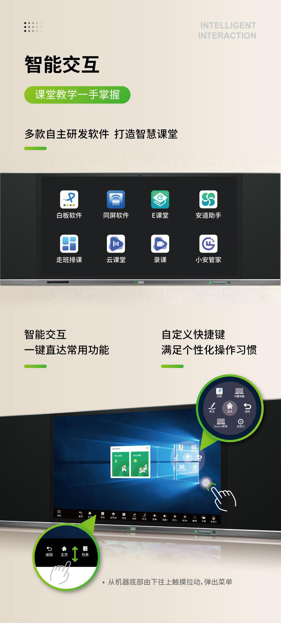 《教育信息化2.0行動計劃》明確提出,要繼續推動信息技術與教育的深度融合、構建一體化的“互聯網+教育”大平臺,以加快教育現代化和教育強國建設;2019年的《政府工作報告》提出了發展“智能+”的要求,具體到教育領域,“智能+教育”要求教育機構充分利用人工智能、物聯網等革命性技術推動智慧教育的變革。智慧教育最直接的體現是智慧課堂,智慧課堂從智慧黑板開始。隨著信息化建設的不斷推進,黑板發生了重大變革,集傳統粉筆書寫和智能電子觸控大屏于一體的智慧黑板代替傳統黑板已是大勢所趨。