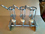 儀器特點: 改進新型,符合中國藥典2010版無菌檢查法,封閉式過濾及開放式兩種培養方式均可使用,并可反復使用。 多種用途:(1)注射用中、西藥品,大輸液的無菌檢查。(2)微生物限度檢查,純化水、注射用水口服中、西藥品,化妝品,食品,保健食品等雜菌計數,可做半固體,混懸液,固體等樣品檢查。(3)帶導管的一次性醫療器具(如輸液袋)。(4)臨床化驗體液中的細菌檢驗,血液制品和獸藥制品的檢驗。(5)少量實驗材料的除菌過濾。 兩種培養方式(1)加培養基至玻璃筒內,可作封閉式直接培養。(2)取出濾膜作好氧菌,厭氧菌和真菌培養。 本儀器一次購買可長期使用,每次試驗一個濾頭損耗一張濾膜,其他部件均為耐用,多次使用,無廢物處理,符合環保(GLP)要求。貴重藥液可回收。在抗生素藥品檢查,所需培養基僅為封閉式濾器的一半量,極大地節約試驗費用。 三聯式、六聯式配套,一次完成一批供試品試驗。 產品規格 底座三聯式長310mm,六聯式長550mm。均適合凈化臺內操作。 濾器容積100mL,有50及100mL刻度。 體積:三聯式310mm×100mm×230mm,六聯式550mm×120mm×235mm 重量:三聯式2.8kg,六聯式5kg 使用方法: 擰松底部圓螺母,抬起金屬固定架,取出玻璃筒。在多孔墊板下先置一橡膠墊圈,在墊板上置一聚四氟乙烯(PTFE)薄膜墊圈,再放上微孔濾膜,再置一(PTFE)薄膜墊圈,安裝玻璃筒,在玻璃筒頂部再安裝一片封閉橡膠片,套上金屬固定架,擰緊底部圓螺母,蓋上頂部可開啟的蓋即成封閉式。 (如用開放式,可不安裝密封橡膠片。) 底座排液管口接一橡膠管,并用紗布及牛皮紙包扎好管口。 將整個濾器連底座包扎好,在121℃蒸汽滅菌后即可使用。 加液體試樣,可滅菌注射器,刺入橡膠片,注入濾器內,加固體或半固體試樣,可用開放式直接加入濾器內。 采用封閉式培養時,請參考儀器操作指導(封閉式)。 注意事項: 在蒸汽滅菌前,應將濾器蓋稍松或刺入一注射器針,再接空氣過濾器,以便通氣。 薄膜在滅菌前用滅菌水浸泡4-6小時,傾去水,再同上法浸泡過夜。 玻璃筒,橡膠墊圈,(PTFE)薄膜墊圈,橡膠密封片系消耗性零件,可零購。 儀器底座及濾器可根據試驗要求,任意配套。 如果排液口接YX930D電動吸引器就不需要抽濾泵和抽濾瓶裝置。