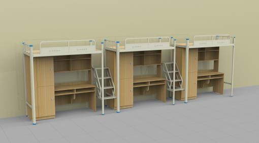 產(chǎn)品詳細(xì)介紹一、規(guī)格尺寸 1、單邊(三人位)尺寸:6640*900*2085mm 二、鐵件部分材質(zhì)說明: 1、床立柱:采用 61*61mm(六邊形棱型管)的Q195 材質(zhì)六邊形棱型管,立柱上下端加裝工程 塑料防護(hù)套件,保證架體與地面接觸無聲,防止學(xué)生擦掛; 2、床橫梁:采用 32*72*1.2mm 的 Q195 材質(zhì)(P 型管)型材,冷軋鋼板采用一次性滾壓成型,增 加承受能力,整體牢固美觀; 3、護(hù)欄:采用 25*1.2mm 方管鑲 1.0mm 油壓成型鋼板; 4、床橫梁:采用 6 根/位 25*25*1.2mm 方管,增強(qiáng)承重能力; 3 六人間 (三人 位梯步 式)連 體公寓床 5、步梯:采用 25*25*1.2mm 的Q235 材質(zhì)方管,步梯踏板采用 1.8mm 鋼板一次性沖壓成型,步 梯與床立柱連接; 6、床板:采用 12mm 厚 E1 級(jí)環(huán)保多層板; 7、鏈接方式:采用 25*195*2mm“H”型卡扣式連接(無螺絲連接,整體全隱裝); 表面處理:鋼件焊接采用二氧化碳保護(hù)焊,金屬表面經(jīng)過打磨、脫脂、酸洗、水洗、中和、表 調(diào)、磷化、烘干,再采用杜邦塑粉靜電噴塑處理、高溫固化等工序。 三、木質(zhì)家具材料說明 1、衣柜:采用上下兩層設(shè)計(jì),突出最大儲(chǔ)物空間,衣柜上層內(nèi)配置(直徑 19mm)不銹鋼掛衣 桿,基材采用 18mm 厚度的 E1 級(jí)環(huán)保板材制作;五金件:采用優(yōu)質(zhì)五金配件;柜門鎖:采用明鎖 暗掛,底部加裝 9mm 高靜音,防潮腳墊; 2、學(xué)習(xí)桌:基材采用 18mm 厚 E1 級(jí)環(huán)保板材,封邊:截面處采用優(yōu)質(zhì) 1.2mm 厚封邊條,桌面: 采用 25mm 厚E1 級(jí)環(huán)保板材,甲醛釋放量達(dá)到國家 E1 級(jí)環(huán)保標(biāo)準(zhǔn),底部安裝 9mm 高的靜音防滑 防潮腳墊; 四、床體布局 1.床位長度采用 2 個(gè)1.92 米+1 個(gè)2 米的錯(cuò)開式布局,適用于房間尺寸有限的情況下滿足不同 身高的學(xué)生需求。 |