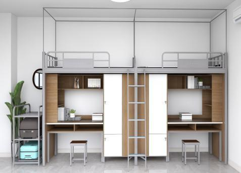 產(chǎn)品詳細介紹1、規(guī)格:L4000mm×W900mm×H2085/2885mm 2、床邊立檔:立柱采用 60mm×60mm×1.2mm 棱形管,與 20mm×1.2mm 圓管、25mm×25mm×1.2mm 矩管、 25mm×50mm×1.2mm 矩管套用立柱上下兩端加專用內(nèi)塞,保證架體與地面接觸無聲,防止學生擦掛。 3、床中立檔:立柱 60mm×60mm×1.2mm 方管、25mm×25mm×1.2mm 矩管套用 4、床橫梁:床梁 85mm×40mm×1.2mm 刀型材 5、床鋪橫撐:30mm×20mm×1.2mm 矩管七根 6、床前后方和床立柱連接采用卡扣式連接 7、床護欄:25mm×25mm×1.2mm 方管和 15mm 三聚氰胺飾面板套用,高 300mm。 7 四人間 (兩人 位爬梯 式)連 體公寓床 8、床梯:20mm×40mm×1.2mm 橢圓管;橫管 25mm×25mm×1.2mm 方管,帶防滑塑膠踏板,踏板下襯 1.5mm 厚 冷軋鋼板,防滑踏板尺寸: L320mm×W75×D15mm,踏板上帶 12 顆夜光顆粒; 9、蚊帳架:φ16mm×1.0mm 圓管和 19mm×1.0mm 圓管套用,連接部位必須有螺栓固定 10、衣柜:規(guī)格L600mm×W750mm×H1690mm,柜體分上下二層,上層為儲物空間,下層為掛衣空間 11、學習桌:桌面規(guī)格 1133mm×600mm×25mm,以優(yōu)質(zhì) E1 級環(huán)保中纖板為基材,面貼 0.7mm 厚優(yōu)質(zhì)環(huán)保防火 板,桌面正面封邊采用中空E 型鋁合金嵌入式封邊,倒鴨嘴邊; 12、桌下儲物柜:規(guī)格L400mm×W450mm×H725mm,結構設計為上抽下柜。 13、雙面五層側(cè)書架:規(guī)格L480mm×W750mm×H1690mm,桌上三層為書架,桌下兩層為鞋架 14、正面書架:寬度 240mm,長度與書桌匹配 15、所有柜門、抽屜面板均帶明鎖暗扣型鎖扣,便于維修更換 16、所有板材均為 15mm 厚 E1 級環(huán)保三聚氰胺板,封邊采用 1.5mm 優(yōu)質(zhì)同色PVC 熱熔膠封邊; 17、床鋪板:采用 12mm 厚 E1 級環(huán)保實木多層板。 18、衣柜、書架、桌下儲物柜底部須加 80mm 高防潮架,采用 20*20*1.0mm 矩管。 19、本項目所有鋼制件表面必須經(jīng)過嚴格的打磨、拋光、除油、除銹、陶化烘干處理后,高壓恒溫環(huán)氧樹脂固 體粉末靜電噴涂處理。 |