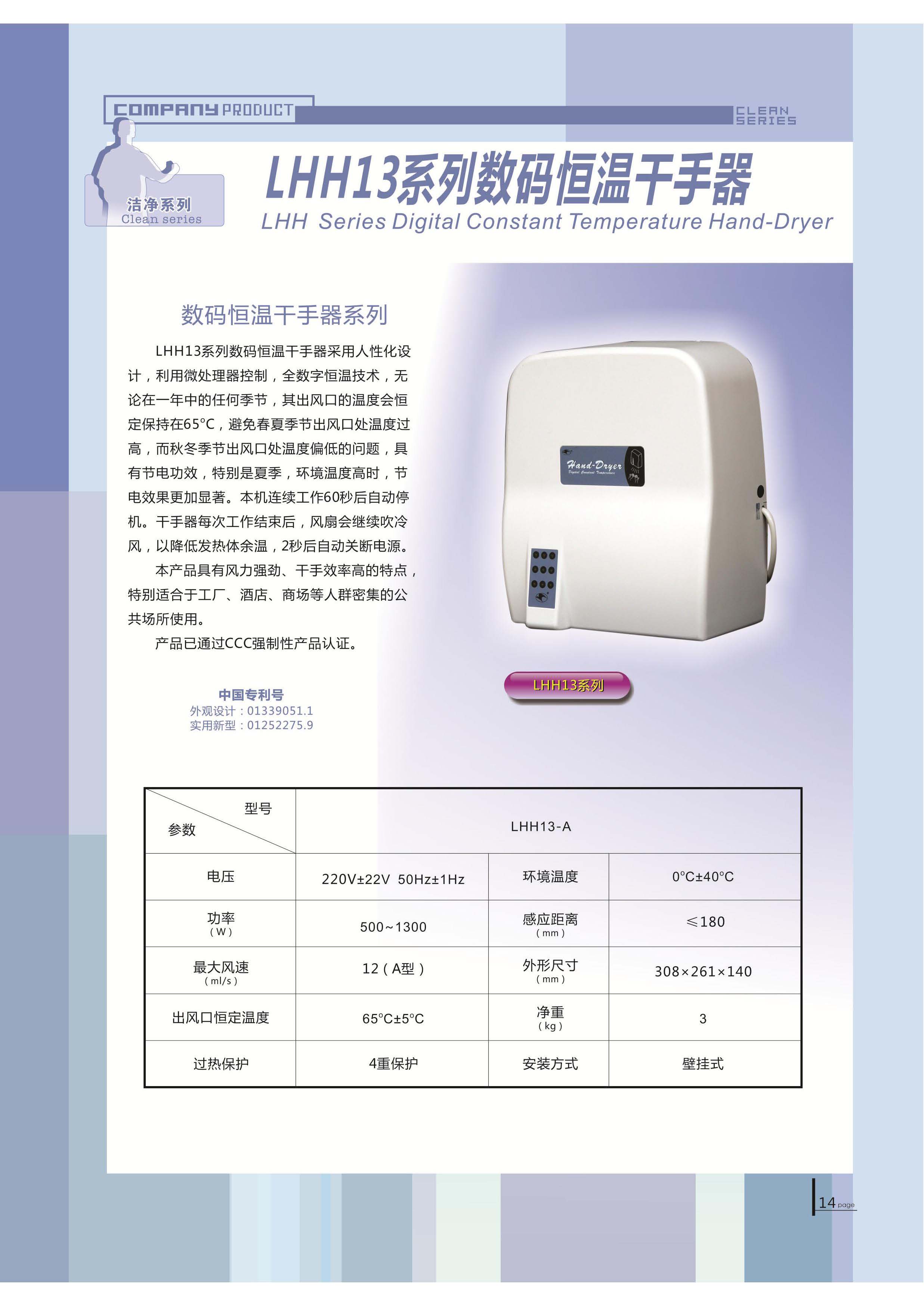 產品詳細介紹 LHH13系列數碼恒溫干手器采用人性化設計,利用微處理器控制,全數字恒溫技術,無論在一年中的任何季節,其出風口的溫度會恒定保持在65攝氏度,避免春夏季節出風口處溫度過高,而秋冬季節出風處溫度偏低的問題,具有節能省電的功效,也極大的節省運營成本,特別是夏季,環境溫度高時,節電效果更加顯著,本機連續工作60秒后自動停機。 |