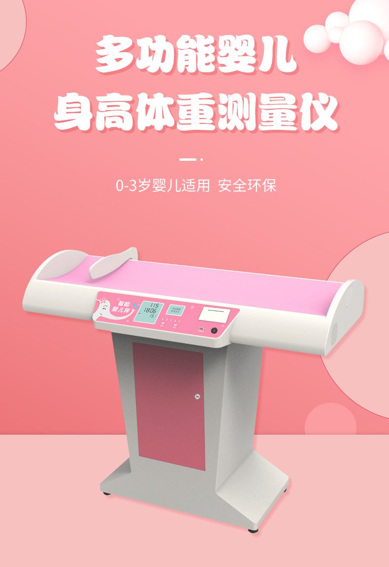 產(chǎn)品詳細(xì)介紹超聲波無接觸測量身高、潔凈、衛(wèi)生,測量速度快,測量精度高,外觀豪華上檔次; 數(shù)據(jù)輸出格式:提供RS232接口(標(biāo)配),方便連接電腦;也可以支持無線藍(lán)牙傳輸(選配) 評價系統(tǒng):提供后臺評測系統(tǒng),方便家長了解兒童的成長曲線和健康分析; 體重測量方式:雙精密平衡壓力傳感器稱重; 身高測量方式:采用美國進(jìn)口超聲波傳感器加滑動擋板; 測高范圍:20-100cm, 分度值:0.1cm; 稱重范圍:0.1-50KG,分度值:0.01kg; 測重傳感器:高精度度、高靈敏、高性能精密平衡梁式壓力傳感器; 選配拓展:底座柜子,熱敏打印機(jī),無線藍(lán)牙2.0/4.0,腳踏開關(guān)(標(biāo)配); 雙液晶屏顯示:*采用兩個高清液晶屏顯示: 5寸高清液晶屏待機(jī)狀態(tài)下顯示當(dāng)前日期、時間和溫度,測量完畢后屏幕顯示身高、體重、溫度,大字體超高清顯示,非常方便醫(yī)護(hù)人員查看測量結(jié)果。 3寸液晶屏上待機(jī)狀態(tài)下顯示用戶單位名稱(比如:河北省人民醫(yī)院)和歡迎語;檢測有重量時顯示操作提示。測量狀態(tài)下顯示測量提示語,測量結(jié)果顯示二維碼,另外還可以掃屏幕上的二維碼,測量結(jié)果直接發(fā)送到用戶手機(jī)上,可直接進(jìn)入評價系統(tǒng)查看系統(tǒng)評測信息。 自動語音播報(bào):清晰語音報(bào)出測量數(shù)值并且客戶可以根據(jù)使用情況設(shè)置提示語音。 清零操作:設(shè)置有清零按鈕,可實(shí)現(xiàn)去皮功能。 打印系統(tǒng):微型熱敏打印機(jī),全自動打印,還可設(shè)置打印醫(yī)療衛(wèi)生單位名稱,例如:某某疾病預(yù)防控制中心某某社區(qū)。(選配) 測量速度:快速測量600次/小時。 電源:采用AC100V-240V電源,輸入寬電壓適合電壓不穩(wěn)定地區(qū)。 消耗功率:工作時平均10W。 工作環(huán)境:溫度-10℃至+40℃ 濕度:20%-85%PH。 推薦使用:醫(yī)院兒保科、社區(qū)服務(wù)站、疾控中心、體檢中心、洗浴中心等部門和單位;