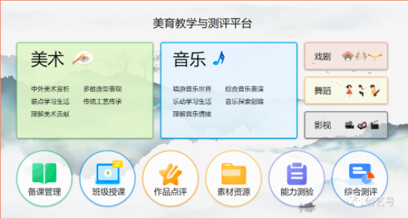 創(chuàng)藝號三大課程體系輔助以整體智慧美育教學平臺,從教師的日常教學所需出發(fā),為教師便捷高效開展課程、采集學生作品、多維多元評價提供技術保障,致力于服務美育進中考工作的落實與推進。