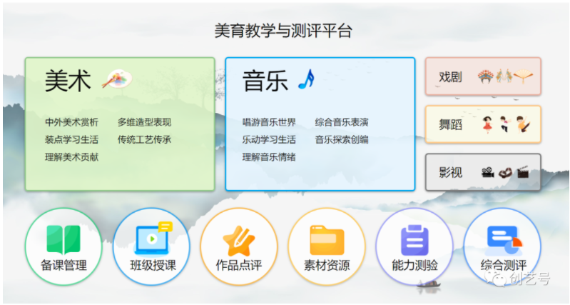 創(chuàng)藝號三大課程體系輔助以整體智慧美育教學平臺,從教師的日常教學所需出發(fā),為教師便捷高效開展課程、采集學生作品、多維多元評價提供技術(shù)保障,致力于服務(wù)美育進中考工作的落實與推進。