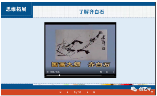 基于知識建構(gòu)理論,構(gòu)造美育創(chuàng)新教學三步法:知識建構(gòu)、思維拓展和創(chuàng)意實踐。知識建構(gòu):提取教材中的知識點,通過生活場景引入,搭建起學生新舊知識的橋梁,實現(xiàn)新知識的建構(gòu)。配合引導性提問,帶動學生主動獲取課程的知識。其中包括美術(shù)知識、美術(shù)技法、藝術(shù)流派、名人名作、創(chuàng)作特點等。