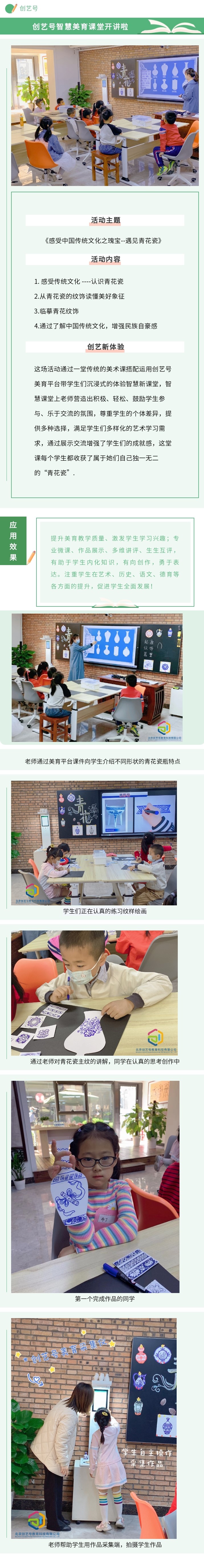 | 區(qū)域美育整體解決方案。創(chuàng)藝號美育綜合建設方案,做到“三建設,三提升”,建設美育創(chuàng)新型課程模式,提升區(qū)域整體教學能力;建設美育發(fā)展性評價體系,提升學生藝術綜合素養(yǎng);建設美育專業(yè)化場地課程,提升學校優(yōu)質(zhì)特色發(fā)展,有效服務美育進校園、進中考。 |