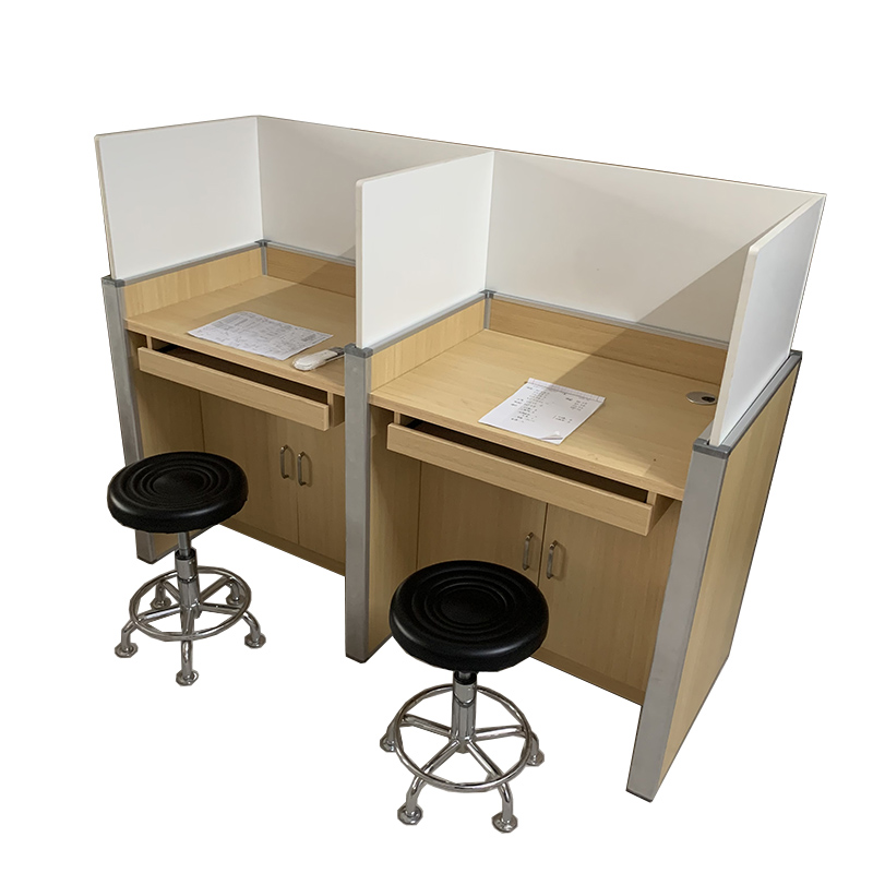 產品詳細介紹新學考數字語音室升降屏風卡座電腦桌 桌體材質:桌體采用E1級15毫米厚環保實木顆粒板,其臺面為25毫米厚的實木顆粒板,甲醛釋放量達到國家質量體系E1級環保要求,升降屏風采用優質PVC封邊或鋁合金型材,中間采用15mm厚中密度纖維板,外貼布絨,鋁合金外框,結構合理,封邊精度高,表面靜電噴涂處理,屏風面絨面料采用高品質面絨、色澤光亮艷麗,格調大方高雅,清新脫俗,視覺無色差,經防污加工處理,同時具備阻燃,易清潔、耐磨等特性。色澤大方美觀,流露現代美感。智能升降屏風材質:白色優質PVC板;或者實木油漆板。 |