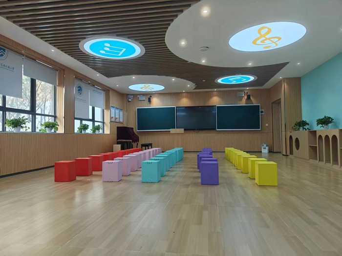 專業(yè)的吸音墻板與燈光系統(tǒng)營造出沉浸式氛圍;配備了充足的樂器存儲空間,支持合唱、器樂合奏等多種教學(xué)模式。