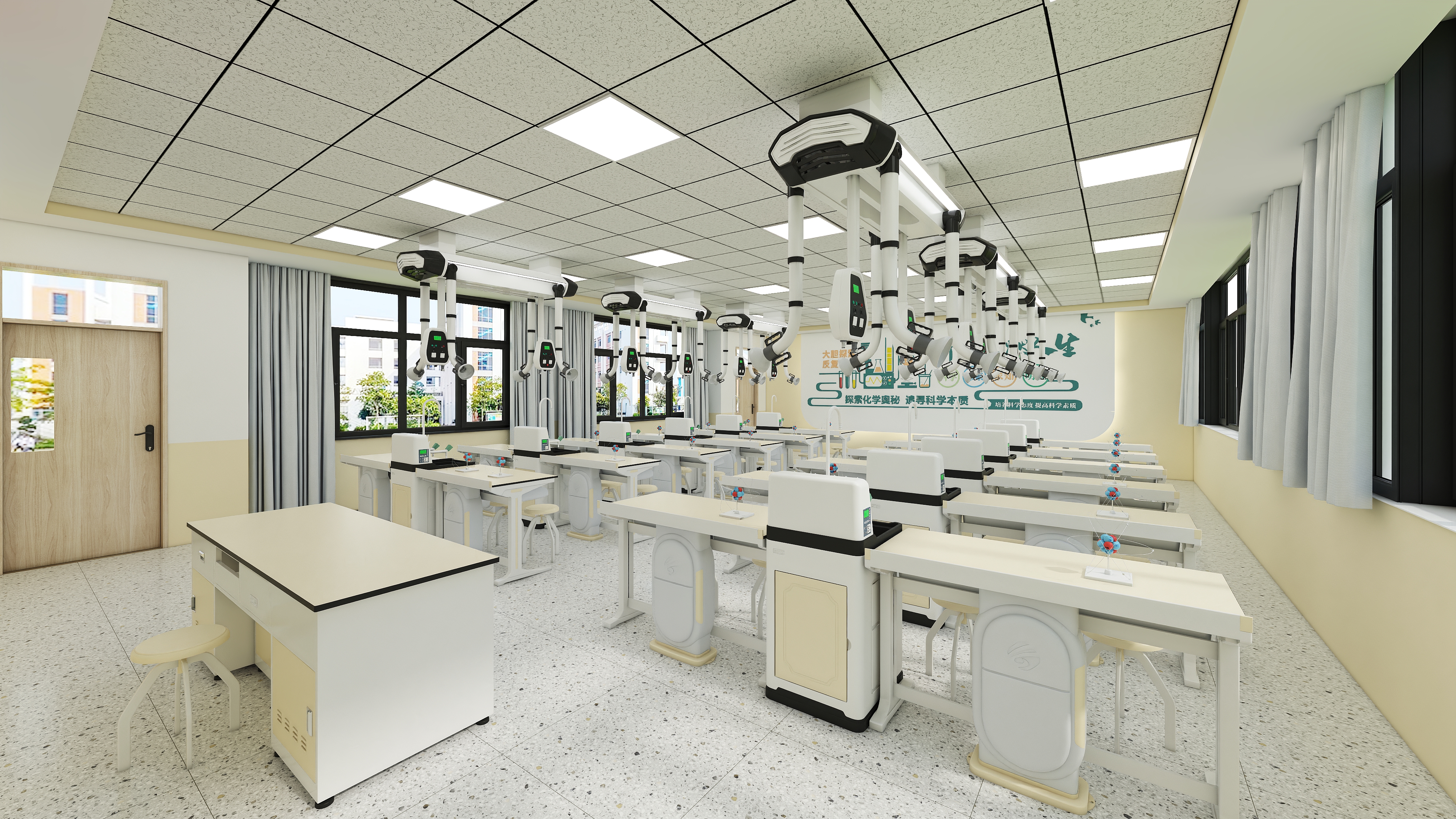 吊裝實(shí)驗(yàn)室迎合課程改革,由傳統(tǒng)實(shí)驗(yàn)室向多元化實(shí)驗(yàn)室發(fā)展,采用多樣化的集成模塊設(shè)計(jì)(給排水、布線、通風(fēng))。解放單一的地面布線,轉(zhuǎn)為充分利用教室上方空間。解決地面施工困難情況,多樣化的集成模塊讓施工更簡單、更靈活。化學(xué)吊裝實(shí)驗(yàn)室采用升降水電系統(tǒng)、、排風(fēng)系統(tǒng)、控制系統(tǒng),根據(jù)教育部發(fā)布的中小學(xué)化學(xué)無機(jī)實(shí)驗(yàn)室、有機(jī)實(shí)驗(yàn)室、電化學(xué)實(shí)驗(yàn)室建設(shè)標(biāo)準(zhǔn)設(shè)計(jì)而成。