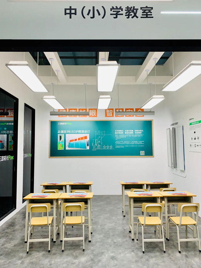 在2025年第30屆光亞展上重磅推出的“光場景實驗室”,集中展示了一系列創新成果。這些技術精準對應新國標中對色溫、顯色指數、波動深度等關鍵參數的要求,特別是在書寫板照明方面,三雄極光的智能調光技術能夠根據教室實際光線條件自動調節,完美契合新國標要求。