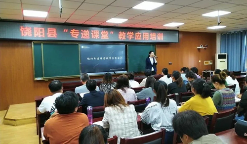 近日,河北省衡水市饒陽縣教育局舉辦了“專遞課堂”教學應用培訓會,縣直小學、鄉鎮中心校主管教學校長、教師代表和網管員,鄉鎮一般小學和教學點的網管教師共計110人參加了會議。培訓會中,縣教育局鄭局長做了重要講話,現代中慶培訓講師對專遞課堂系統的管理和使用方法進行了詳細講解,現場還觀摩了實驗小學教師做的“一拖二”遠程互動教學示范。