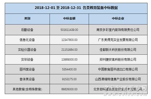附:2018年12月已有教育裝備類別數(shù)據(jù)中累積最高中標金額及其所屬企業(yè)。