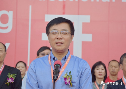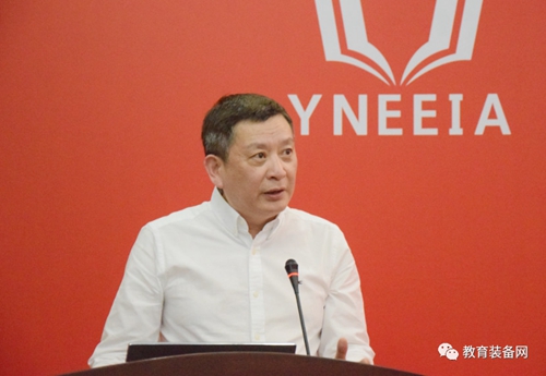 ▲中國教育裝備行業(yè)協(xié)會副會長兼秘書長夏國明講話