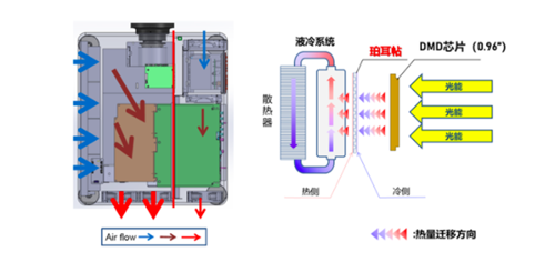 除了以上兩大專利技術,NEC還擁有分離式氣流散熱系統、珀耳帖散熱兩大核心散熱技術,為投影機散熱提供“引擎”。