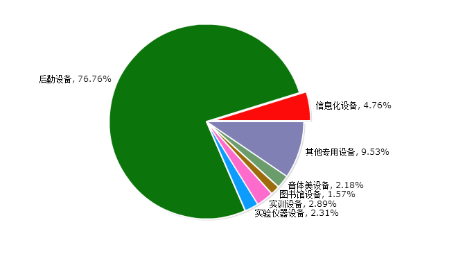 截至2020年7月31日教育裝備網(wǎng)共收集招標(biāo)采購(gòu)信息有效數(shù)據(jù)4512條。根據(jù)7月份收集到的教育裝備招標(biāo)采購(gòu)信息(見圖1):后勤設(shè)備信息量為3560條,占全部信息量的76.76%;其他專用設(shè)備信息量為442條,占全部信息量的9.53%;信息化設(shè)備信息量為221條,占全部信息量的4.76%;實(shí)訓(xùn)設(shè)備信息量為134條,占全部信息量的2.89%;實(shí)驗(yàn)儀器設(shè)備信息量為107條,占全部信息量的2.31%;音體美設(shè)備信息量為101條,占全部信息量的2.18%;圖書館設(shè)備信息量為73條,占全部信息量的1.57%。
