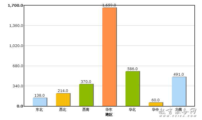 通過對8月份教育裝備網所收集到的招標采購信息、中標信息數據進行分析可以看出,教育裝備類別中后勤設備需求量較大,區域里華東和華北地區的教育裝備需求量較多,教育所屬范圍里高等教育的教育裝備需求占比較大。