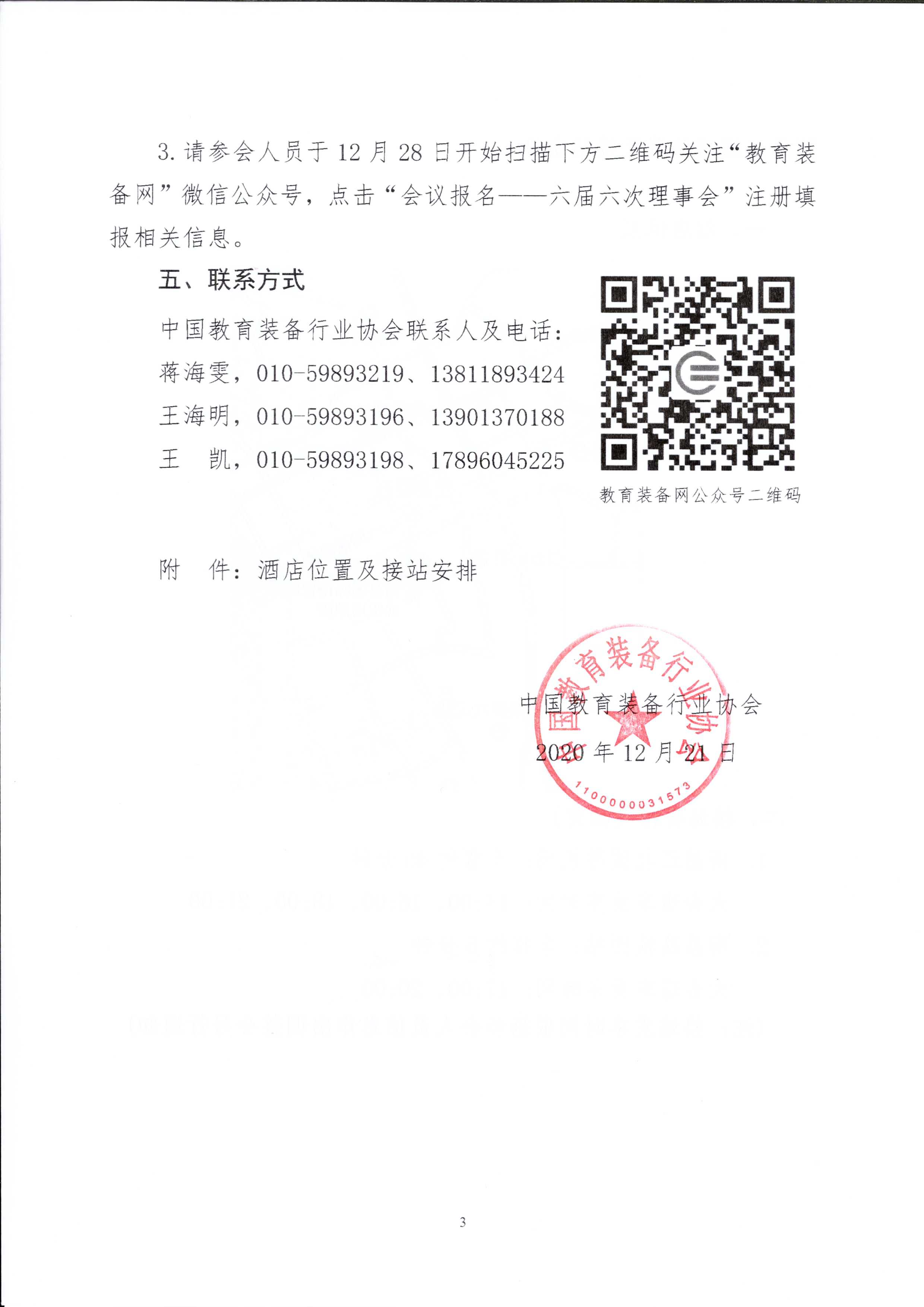 3.請參會人員于12月28日開始掃描下方二維碼關注“教育裝備網”微信公眾號,點擊“會議報名——六屆六次理事會”注冊填報相關信息。