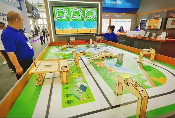 4月23日, 科創教育和人工智能教育領軍企業品牌的蘑菇云攜科創教學全場景解決方案:智慧交通、智慧校園、AI游樂場及科創教學產品亮相第79屆中國教育裝備展,在福建廈門國際會議展覽中心B1017展位通過產品互動、現場講解的形式向參觀者展示了全方位與智能化相結合的科創教育解決方案。