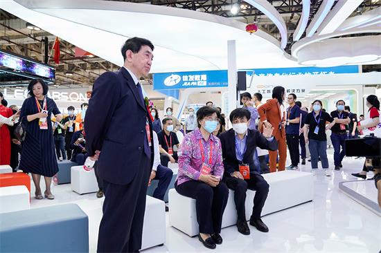 歐帝科技精心的展會籌備以及領先創新的產品方案體系,得到了政府及展會主辦方的關注。中國關心下一代委員會副主任田淑蘭女士及中國教育裝備行業協會領導一行,蒞臨歐帝科技展臺參觀指導。歐帝科技董事長周雪松先生參與接待,并介紹了最新推出的人工智能校園解決方案。