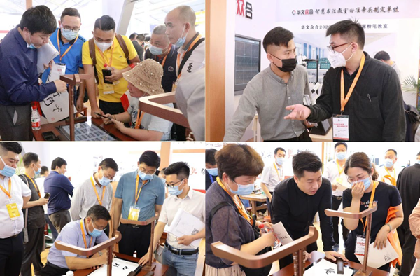 參觀者接連不斷地走進華文眾合展位,通過使用第七代智慧書法教室,體驗者真切感受到智慧書法教學的便利。華文眾合希望能用更加智慧的書法教學設備實現弘揚書法傳統文化的美好愿景,眾心合力,弘揚華文!