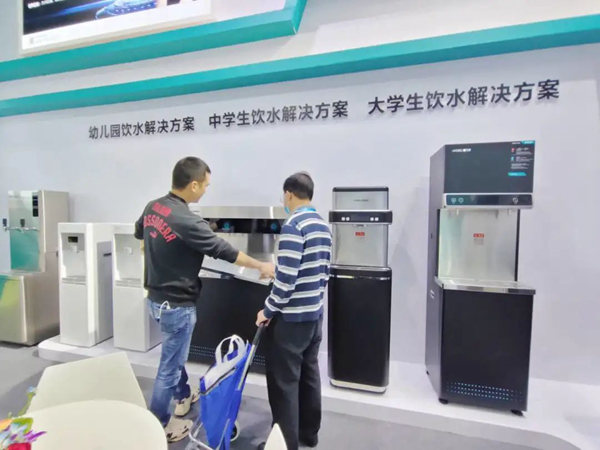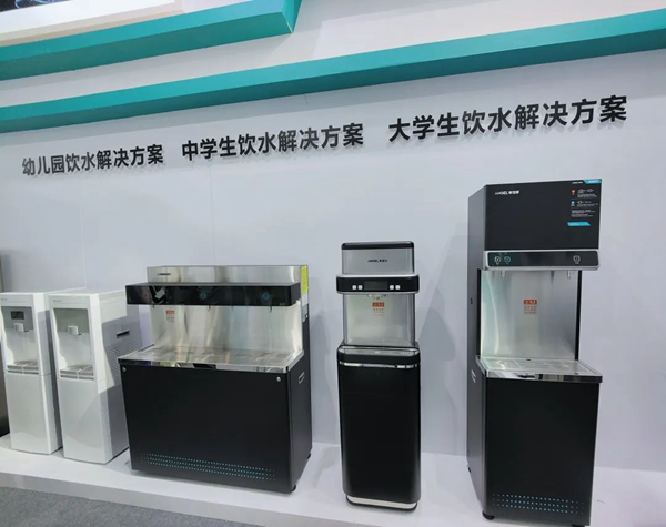 此次展出的新品AHR2902直飲機將物聯網技術和直飲機相結合,讓學校管理者從手機端就能查看水質凈化情況,濾芯壽命等信息,利用便捷的物聯網技術,可幫助管理老師解決校園里飲水設備運營維護難、管理成本高等問題。
