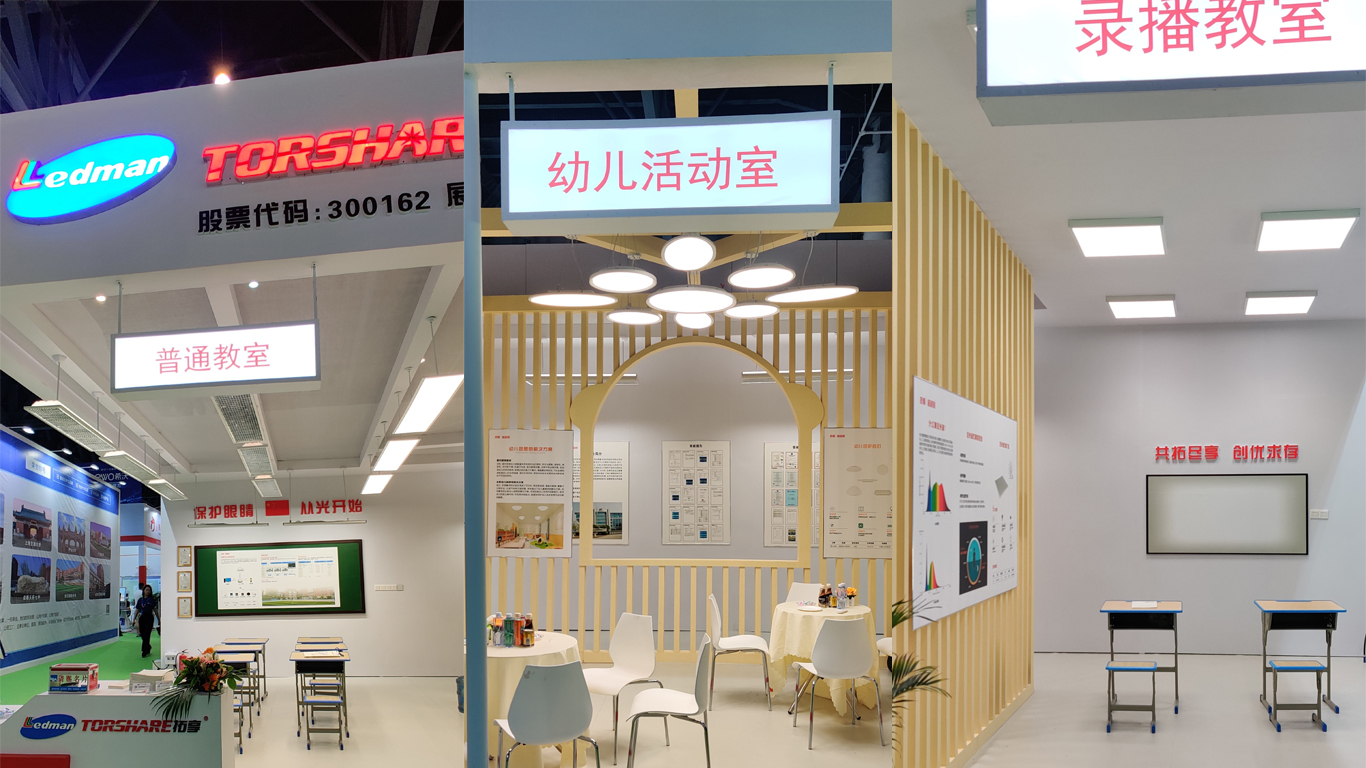 本屆博覽會上,拓享睿視明帶來的全光譜照明解決方案,涵蓋各級各類院校所需的健康照明方案,包含中小學(xué)校的普通教室、錄播教室解決方案,學(xué)齡前的幼兒照明解決方案等,讓現(xiàn)場觀眾更直觀地感受健康光環(huán)境的舒適與護(hù)眼。