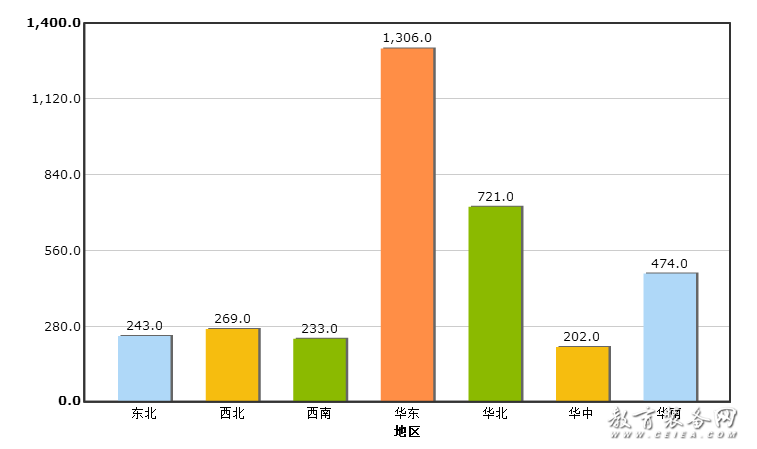 按照國家地理區域劃分,即東北地區、西北地區、西南地區、華東地區、華北地區、華中地區、華南地區(收集數據中不含中國港澳臺地區)。