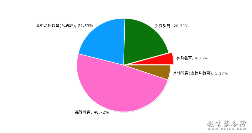 根據教育部的相關劃分,教育裝備網將教育范圍具體設置為學前教育、義務教育、高中階段教育(含職教)、高等教育、其他教育(含特殊教育)。