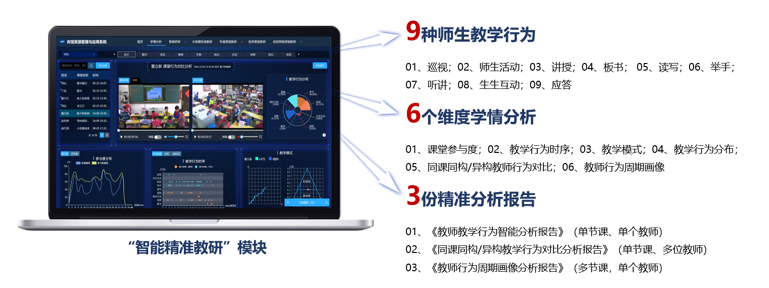 在實際應用中,基于課堂視頻、課堂數據和互聯網,通過“回顧課堂錄像+智能分析報告”的方式,教師可以開展更有效的教學反思,精準找到改進課堂教學的著力點和方向;教研員可以拓展創新教研活動模式,用精準量化的實證數據支撐課堂診斷和評價,提高評價準確性和針對性,更清晰地指導教師成長。