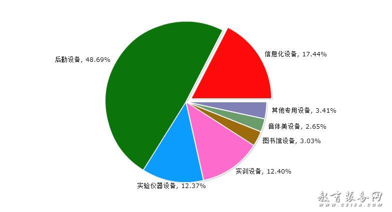 根據(jù)對教育裝備細(xì)分的歸納,教育裝備網(wǎng)將教育裝備具體劃分為七大類,即信息化設(shè)備(含智能平板、錄播系統(tǒng)、智慧黑板等),后勤設(shè)備(含校園基建、安防設(shè)備、食堂設(shè)備、課桌椅等),實驗儀器設(shè)備(含儀器儀表、實驗室平臺等),實訓(xùn)設(shè)備(含實訓(xùn)系統(tǒng)、實訓(xùn)設(shè)施等),圖書館設(shè)備(含借還系統(tǒng)、微型圖書館等),音體美設(shè)備(含樂器、體育設(shè)施、美術(shù)用品等),其他專用設(shè)備(含創(chuàng)客教育、心理健康特教設(shè)備等)。