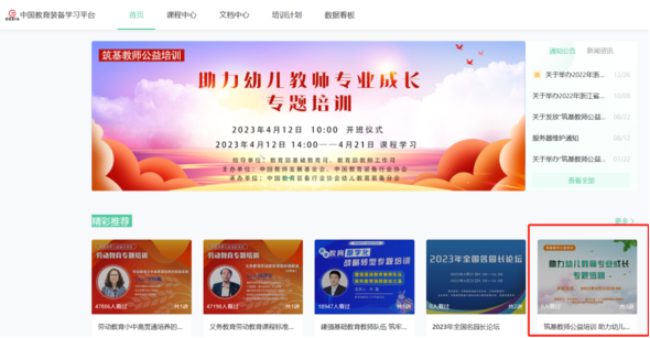 開班儀式:4月12日10:00在首頁——“精彩推薦”板塊觀看《“筑基教師公益培訓”——助力幼兒教師專業(yè)成長》開班儀式。