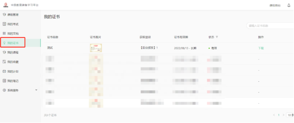 4.發(fā)證。各節(jié)課程學習時長均達到90%以上可獲得學習證明。