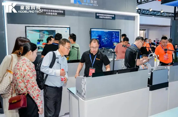 童園科技針對初中理化生實驗考試、教學、實訓不同場景的應用需求,在展區打造出以數字化智能實驗室、初中理化生實驗操作考試考場等多種應用場景,以豐富的產品和應用方案向現場嘉賓和觀眾們進行實景展示,詮釋多維布局和技術實力。