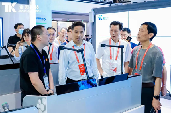 教育部關心下一代工作委員會常務副主任、中國教育裝備行業協會專家委員會主任王富等參加開幕式的領導、嘉賓蒞臨童園科技展位參觀指導,廣東童園科技有限公司CEO胡朝輝向各位領導嘉賓介紹了童園科技新產品和全新的戰略目標。各位領導們對童園科技數字化智能實驗室、中考實驗操作考評系統等教育信息化系列產品給予了高度評價;并充分肯定了童園科技以科技驅動、科技創新與教育改革深度融合的戰略發展方向。