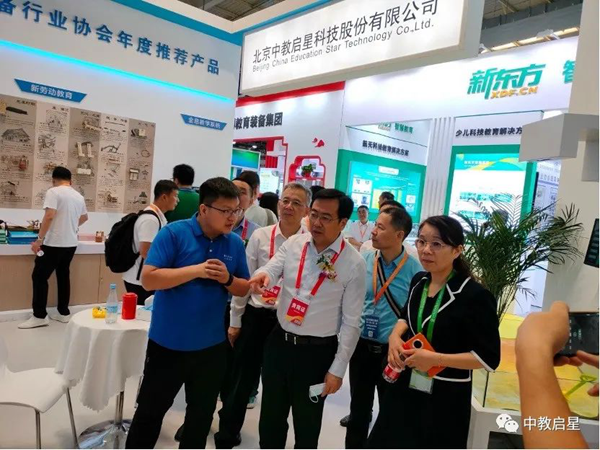 作為受邀參展的虛擬現實融合教育領域的領先企業中教啟星得到各位領導的關注,沈陽市教育技術裝備中心、黑龍江省原教育科學研究院院長、江西省教育廳程裕秋副廳長和江西省教育技術與裝備發展中心熊春光主任親臨展區,體驗了所有展示產品,并給予高度的評價。