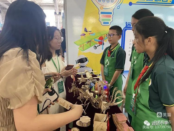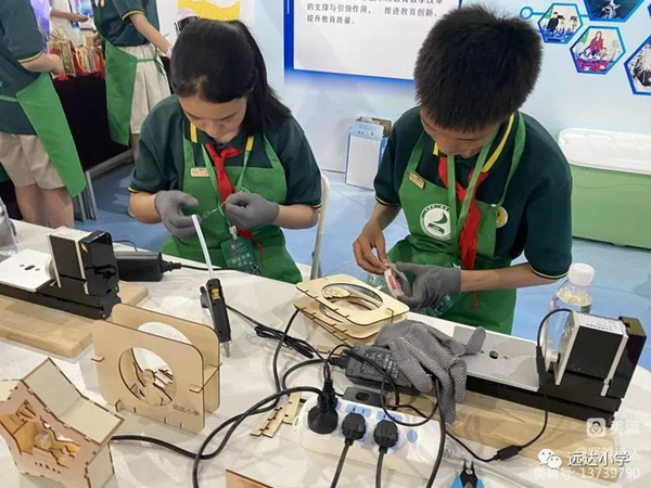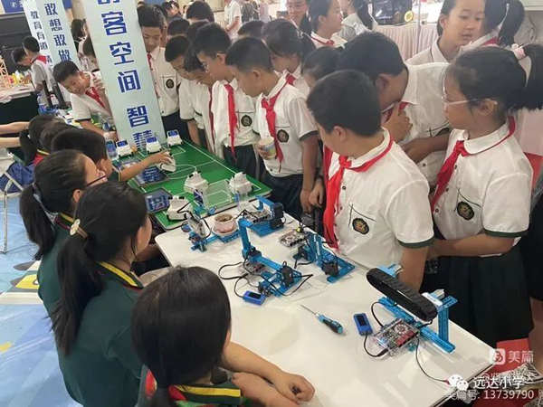 遠(yuǎn)達(dá)小學(xué)以科技為主題,主要包括程小奔機(jī)器人、火星漫游者教育套裝和激光雕刻三大方面,展示了科學(xué)、工程、技術(shù)、數(shù)學(xué)、人工智能等跨學(xué)科知識(shí)的學(xué)習(xí)成果。